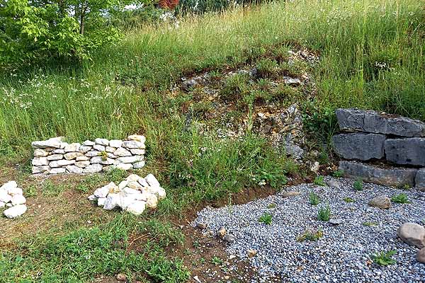 Und nun, kurz vor den Sommerferien und damit dem Ende der obligatorischen Schulzeit stehen die Minilebensräume bereit für die Besiedlung: Schottergarten und Trockenmauer!